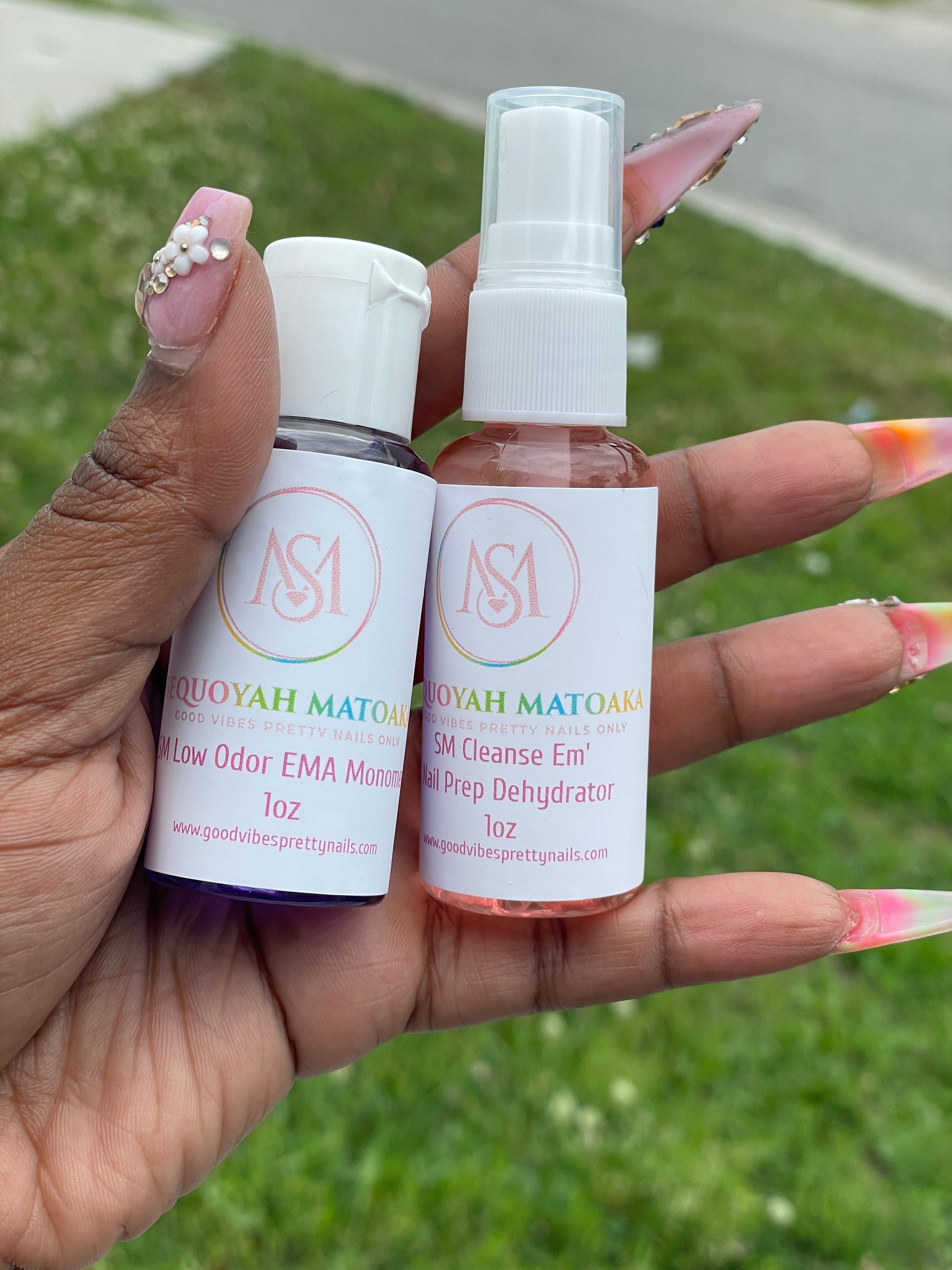 This kit will include samples sizes of our Sunflower EMA Monomer and our Cleanse Em’ Nail Spray Dehydrator. Both in 1oz sizes